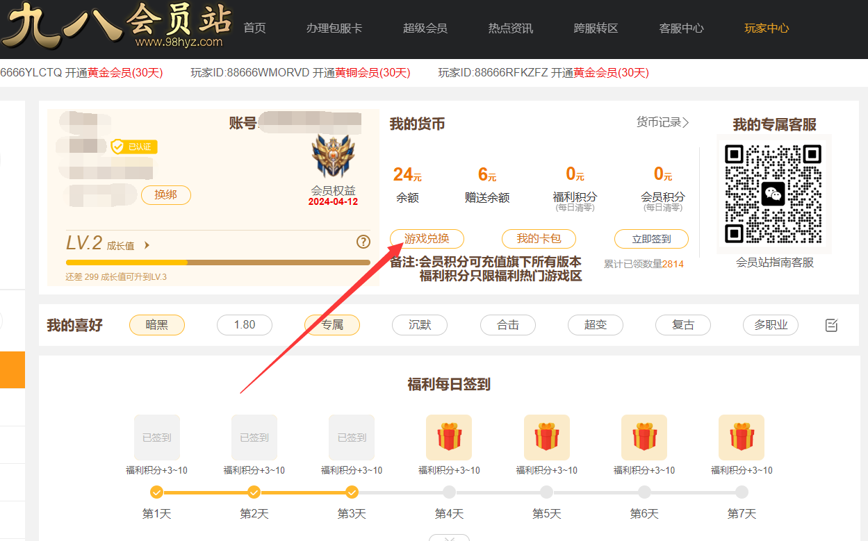 1,首页选择选择【游戏兑换】